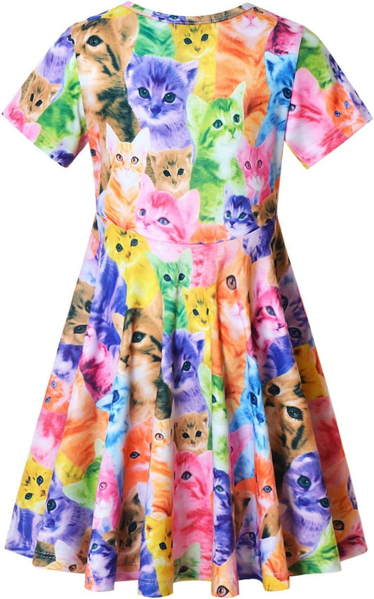 Unicorn Dresses for Girls Summer Swing Short Sleeve Casual Clothes for Kids