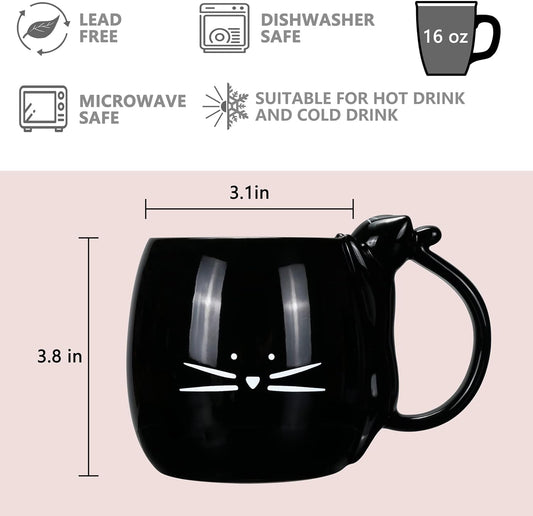 Coffee Mug Cute Cat Mug Gift for Cat Lovers Ceramic Tea Mugs Black 16 Oz