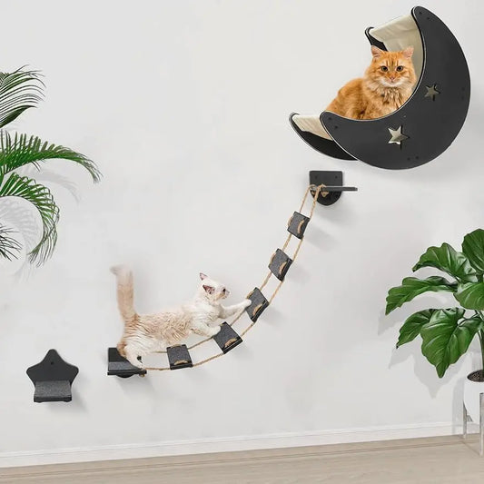 Cat Wall Shelves, Modern Cat Wall Furniture with 1 Step and 1 Climbing Bridge Step, Cat Climbing ...