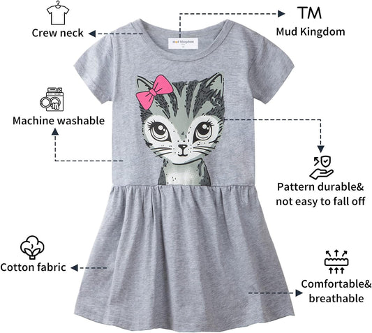 Little Girls Cotton Dresses Holiday Cute Cartoon Prints